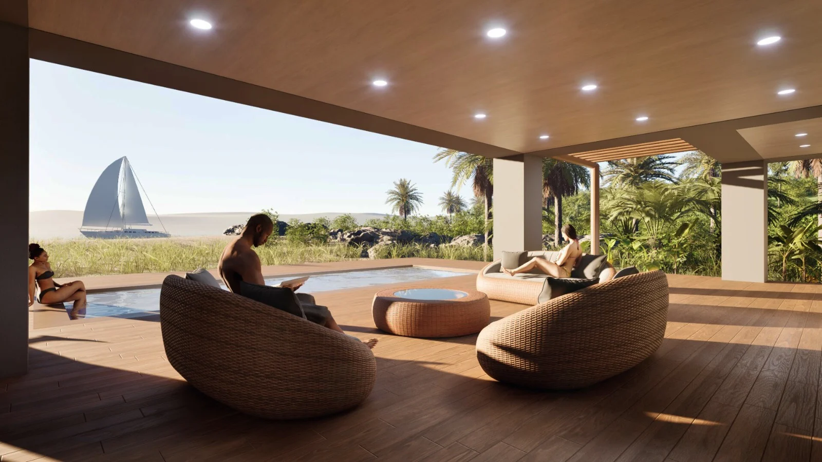 The three-bedroom villa experience is shaped around openness, craftsmanship, natural airflow, visual calm and a more permanent sense of quality.